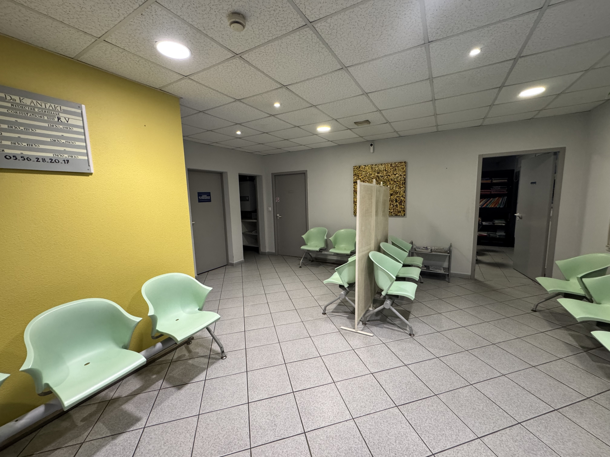 Un parking, une cuisine, une salle d'attente, un jardin sont communs à ce cabinet médical.