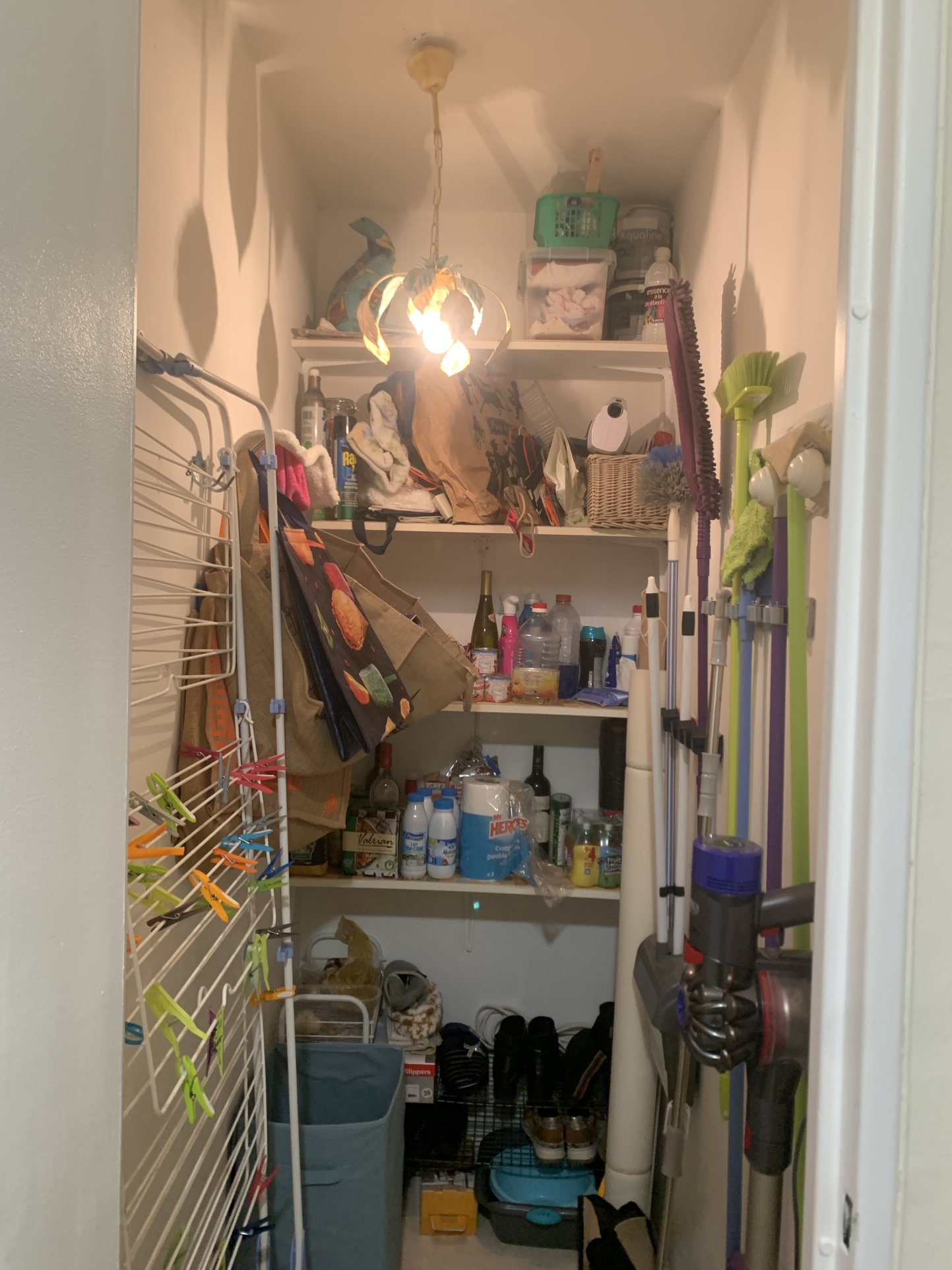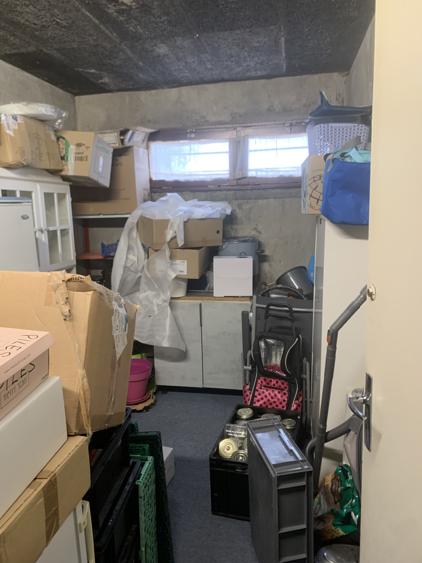 Juste à côté de la porte d'entrée se trouve une grande pièce de rangement avec fenêtre et électricité.