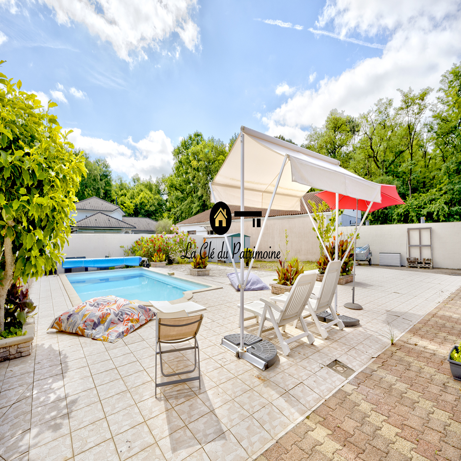 Notre agence LA CLÉ DU PATRIMOINE vous présente cette maison appartement plain-pied située dans un environnement boisé et paisible en 2ème ligne, de 95 M2 sur un jardin aménagé de 450 M2 avec plusieurs places de parking, un abri de jardin, une piscine Desjoyaux 8/4m (pompe Desjoyaux remplacée en 07/2024) exclusive au logement, 4 panneaux solaires. L'ensemble est clôturé et sécurisé par un portail. Ce bien se situe dans une grande propriété divisée en 4 logements (propriétaires occupants), sécurisée par un second portail motorisé. Le logement comprend un séjour avec 2 portes fenêtre qui s'ouvrent sur une terrasse couverte et une pergola (possibilité de fermer le tout), une cuisine équipée et aménagée avec porte fenêtre qui donne accès à une terrasse abritée (possibilité de fermer la terrasse), une chambre avec porte fenêtre et accès sur une terrasse abritée (possibilité de fermer la terrasse), une chambre avec placards, un dégagement aménageable, un couloir accès nuit, une salle d’eau avec douche à l’italienne, 2 vasques et des rangements ( possibilité d’installer une baignoire), un WC séparé, un dressing. La hauteur sous plafond est de 2,65 m. Fenêtre et portes fenêtre double vitrage en PVC avec volets, interphone, chauffage individuel électrique à inertie, cumulus électrique production d’eau chaude 200 L. Tout à l’égout. Orientation SUD/EST. Ses nombreux atouts : le bien est sécurisé (double portail), aucun travaux n'est à prévoir et les possibilités d'aménagement sont nombreuses. Proximité des écoles, collège, lycées, parcs, commerces et centre commercial, arrêt de bus proche,gare et tram ligne C, 30 mn de Bordeaux centre, 30 mn de l’océan et 45 mn du Bassin. Montant de la taxe foncière 2024 : 1 457 €/an Prélèvement mensuel 2025 : EDF : 104,82 € - eau 35 € (abonnement compris) Année de construction 1972 DPE : C – GES : A (diagnostic réalisé en 05/2025) Mode en syndicat coopératif pour la gestion de la copropriété. Montant des charges mensuelles de copropriété 38 €/mois. Pas de procédure en cours. Pour toute question ou pour une visite, je suis à votre disposition. Johanna CLEDOU 06 32 21 35 63 jc@lacledupatrimoine.com