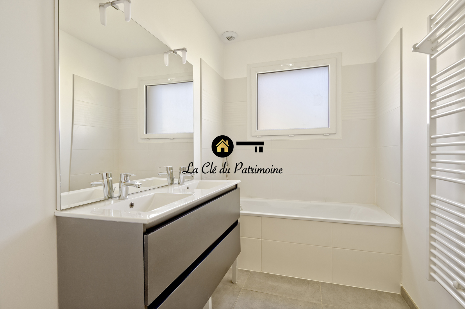 A l'étage, un palier dessert 3 belles chambres (12, 12 et 20 m2) dont une suite parentale avec dressing et salle d'eau, une salle de bains avec double vasque ainsi qu'un wc séparé.
