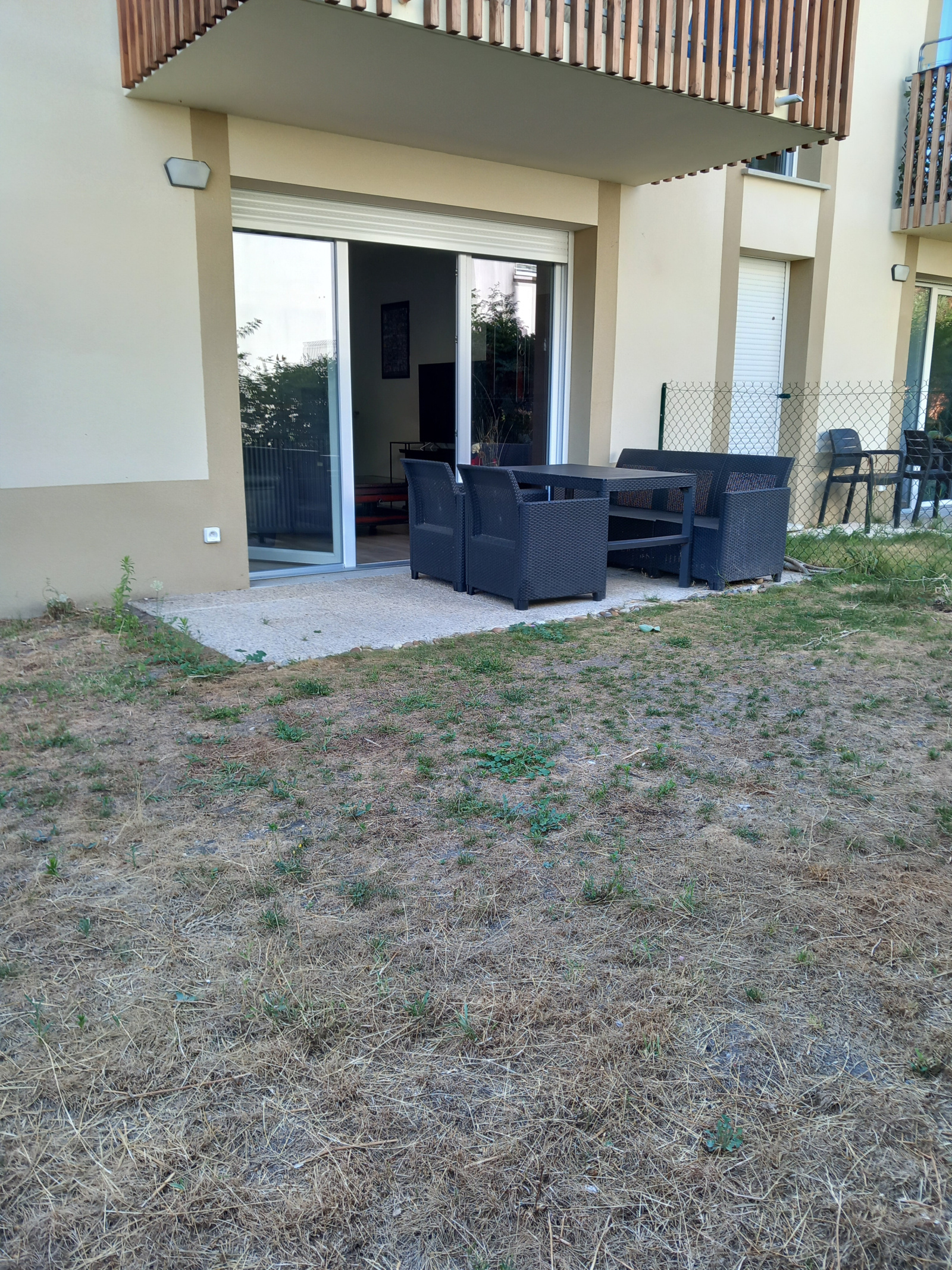 La pièce de vie s'ouvre sur la terrasse d'environ 6 m2 et le jardin d'environ 34 m2, côté EST, au calme sans vis à vis.