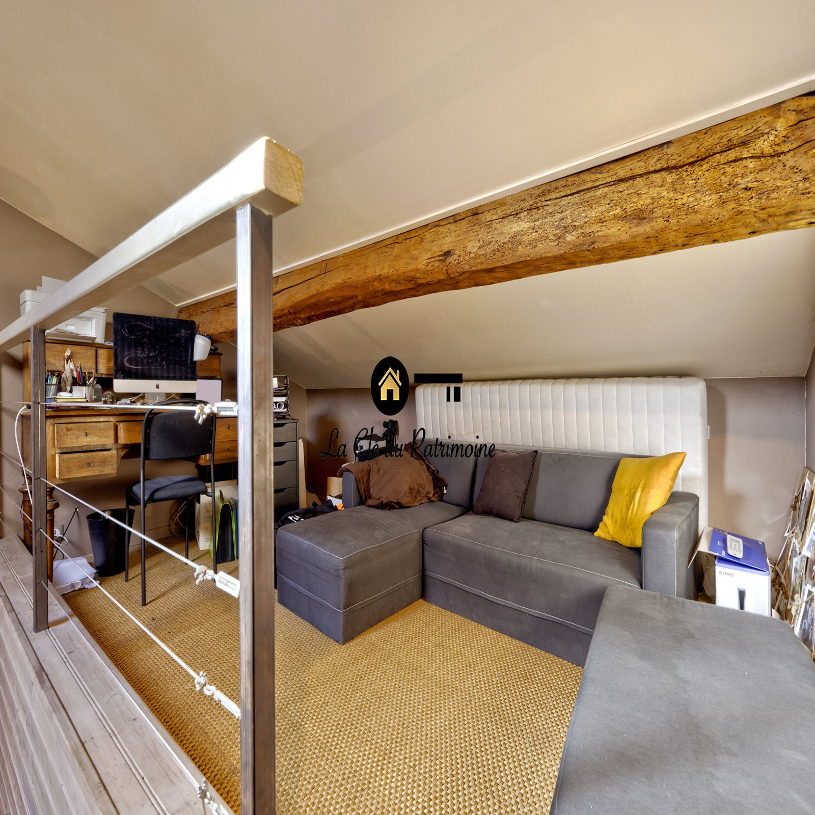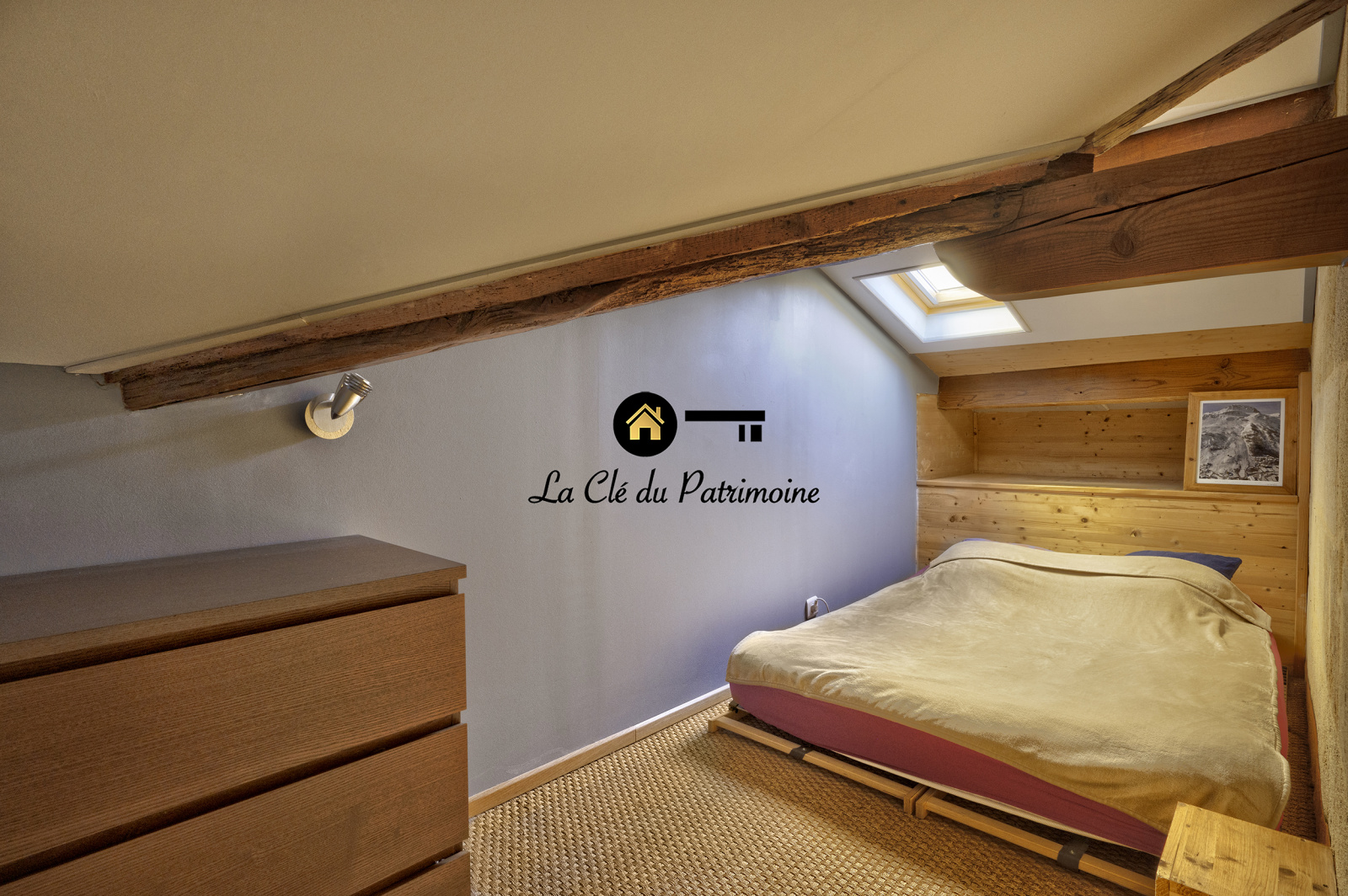 Une chambre avec placard est située au rez de chaussée ainsi que la salle de bain attenante qui comprend deux vasques, douche et baignoire. Le WC est séparé. L'étage mansardé se compose d'une mezzanine avec bureau et canapé convertible, d'une chambre, d'un espace couchage pour dormir occasionnellement, d'une pièce de rangements.