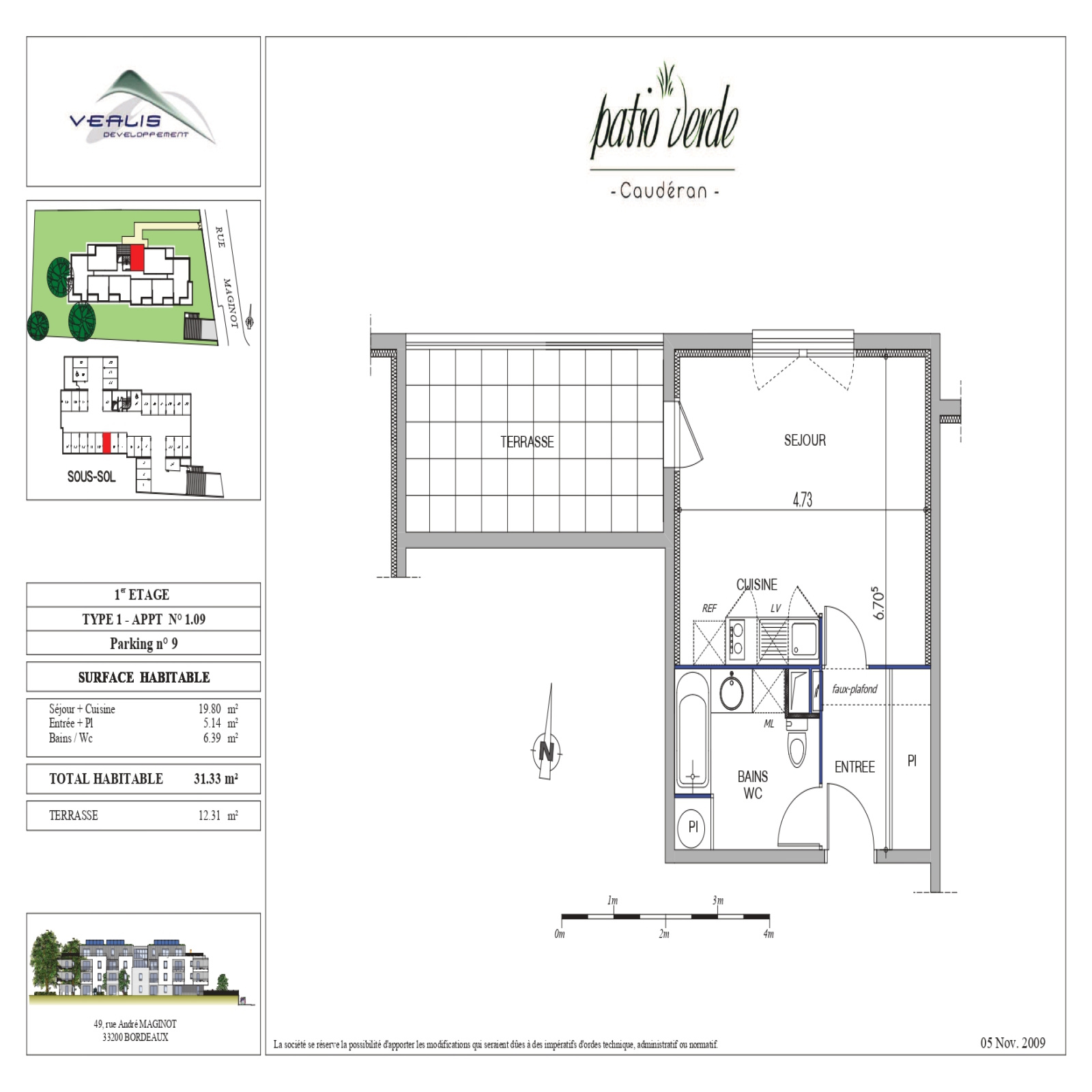 Bordeaux (33200) APPARTEMENT 31 M2- GRANDE TERRASSE 12M2 - PARKING - RUE MAGINOT BORDEAUX CAUDERAN