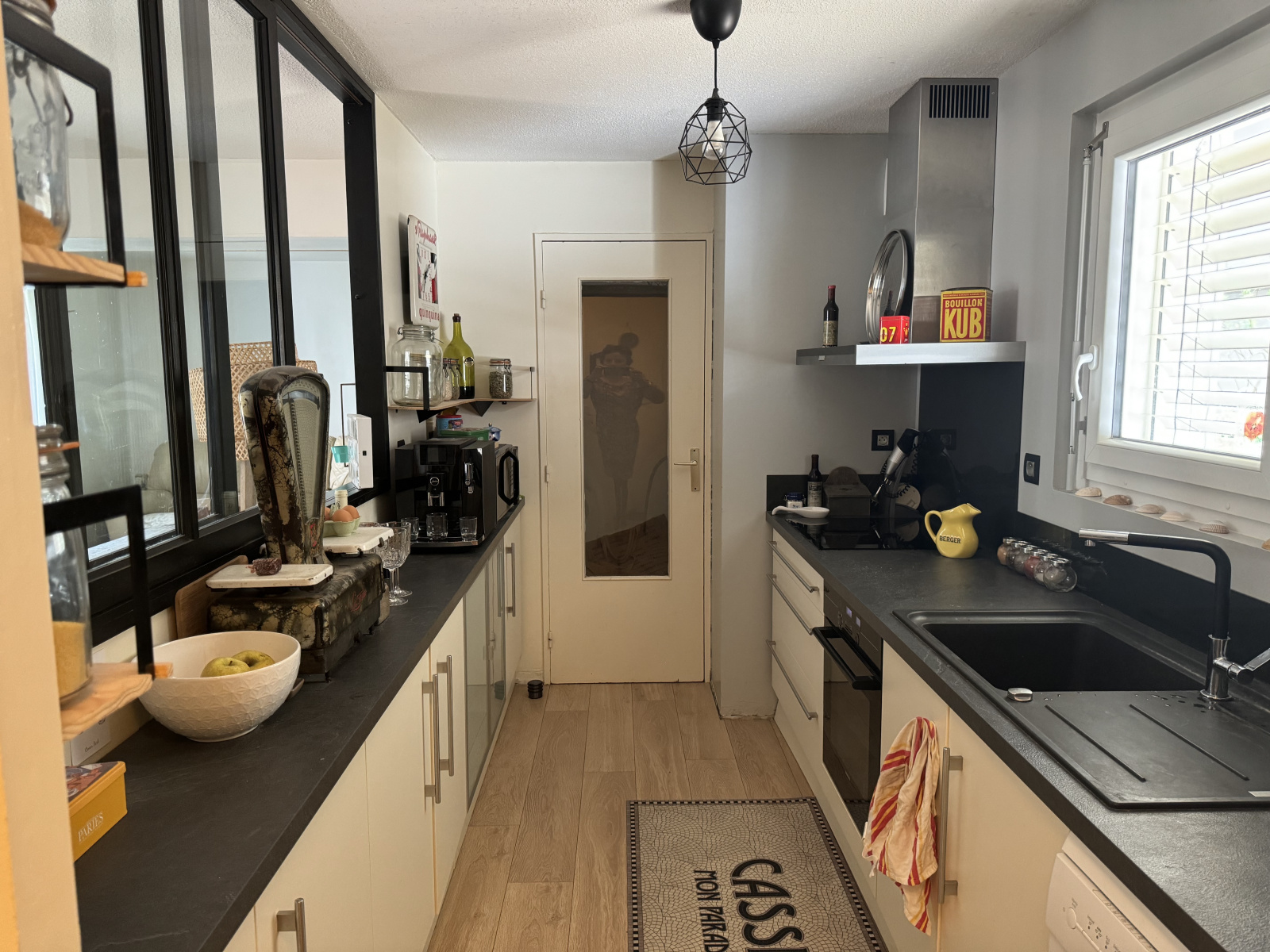 L'appartement se compose d'une entrée, d'une belle pièce de vie lumineuse donnant sur la terrasse, d'un espace bureau, d'une cuisine séparée aménagée et équipée, d'un cellier/buanderie, de 3 chambres avec placards (10 m2, 10 m2, 13 m2 environ), d'une salle de bain, d'un wc séparé avec lave main.
