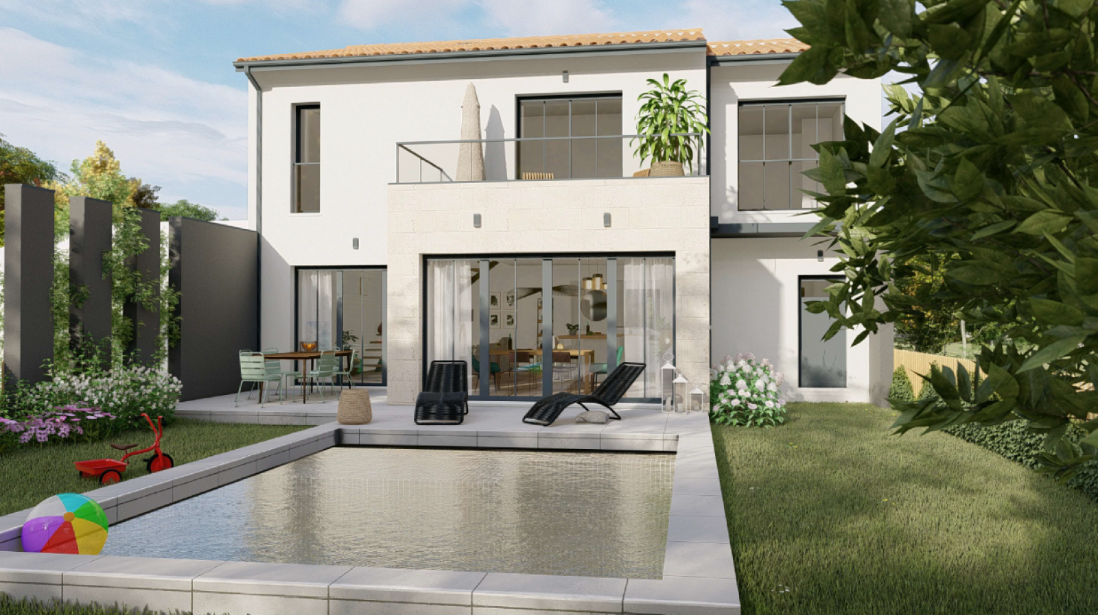 Nous vous présentons un exemple d'implantation qui s'intègre parfaitement dans le lieux. Cette maison d'environ 150 m2 avec garage est proposée au prix de 428 000 euros.